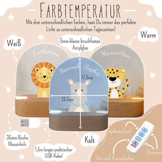 LED Nachtlicht Kinder personalisiert "Jungle"