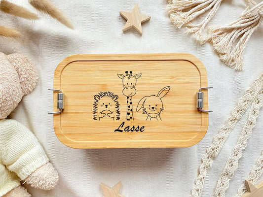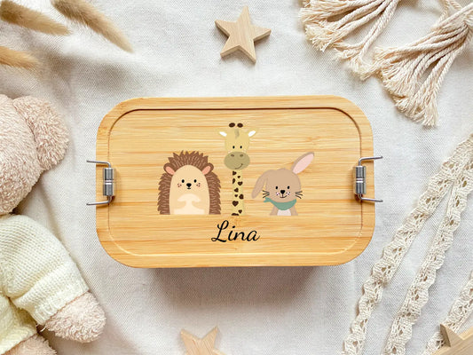 Brotdose Edelstahl personalisiert "Animals" Aquarell